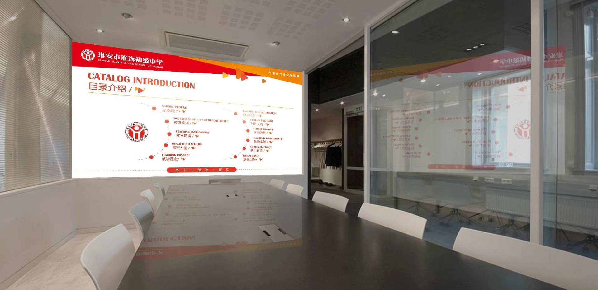 淮安市淮海初級中學(xué)招生PPT設(shè)計(jì)案例,以紅色整體設(shè)計(jì)風(fēng)格,可視化的展示,增強(qiáng)感染力,使得信息表達(dá)更為精準(zhǔn),傳播更為有效,讓觀眾印象深刻。目錄介紹清晰,內(nèi)容表達(dá)詳細(xì)。圖文結(jié)合形式,體現(xiàn)師資能力。